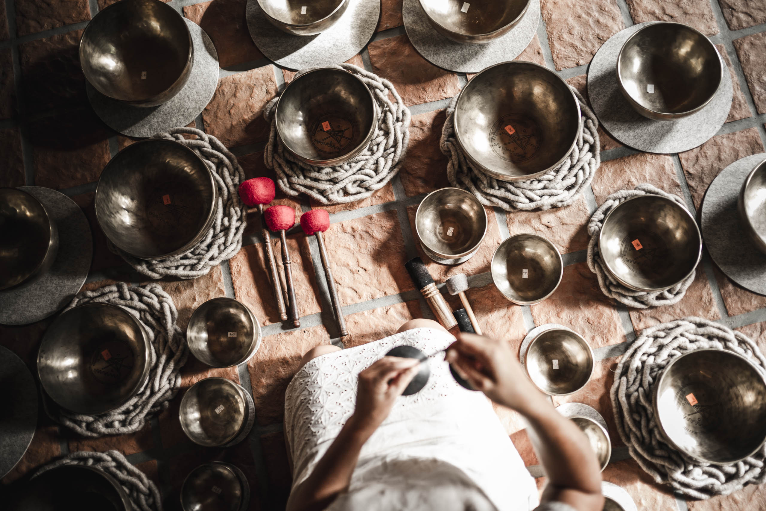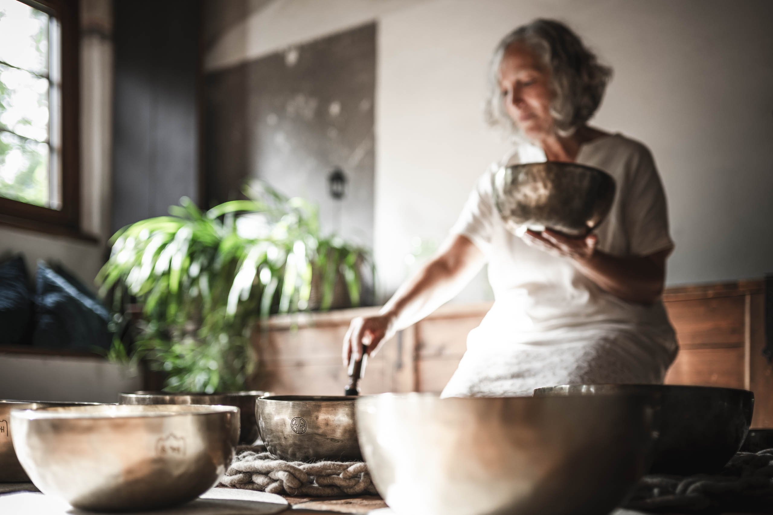 Das einstimmende Klangbad mit Meisterklangschalen ermöglicht tiefe Entspannung und schenkt Ruhe, Wohlgefühl und Energie. Anschließend findet das Malen im Malort statt.